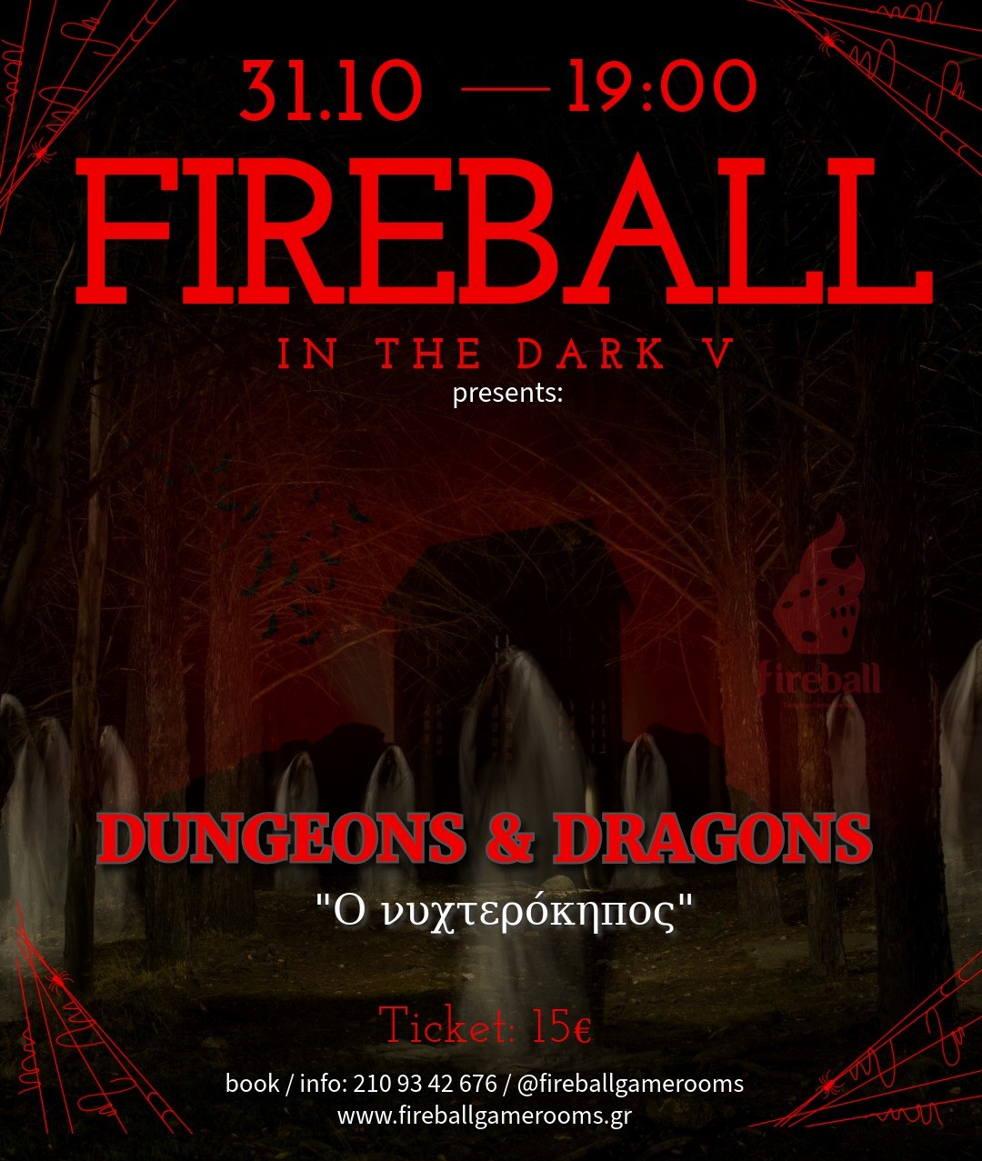 Το Dungeons & Dragons (D&D), το κλασικό, αγαπημένο όλων επιτραπέζιο παιχνίδι ρόλων (TTRPG), όπου οι παίκτες αναλαμβάνουν ρόλους ηρώων μέσα σε έναν φανταστικό κόσμο γεμάτο μαγεία, τέρατα και μυστήριο, επιστρέφει στο "FIREBALL in the Dark event"!