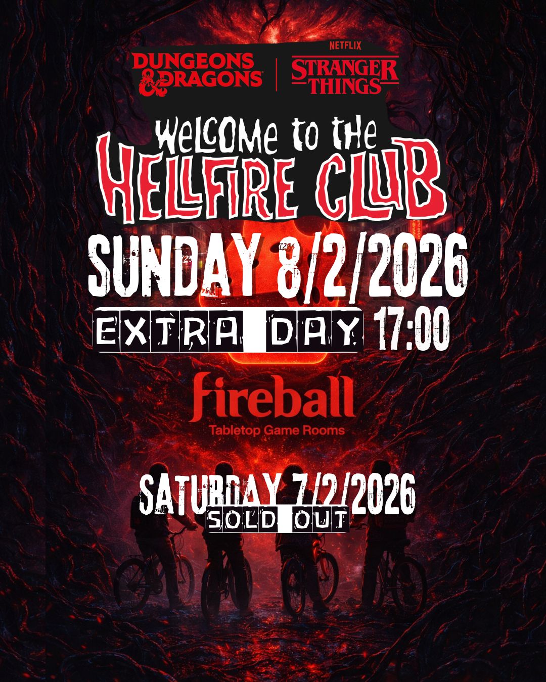 Το γρήγορο sold out και το αυξημένο ενδιαφέρον σας, μας φέρνει στην ευχάριστη θέση να ανακοινώσουμε μια extra μέρα για το Stranger Things D&D Event: "Welcome to the Hellfire Club"!